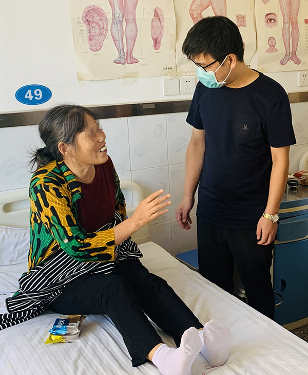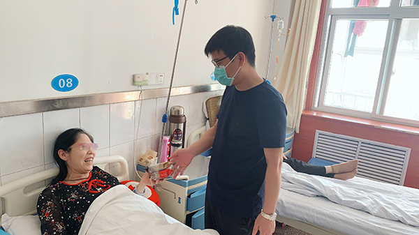 每到一个病房,医院都亲手把月饼送到每位患者的手里,送上中秋祝福的同时,还会鼓励他们安心休养,争取早日。