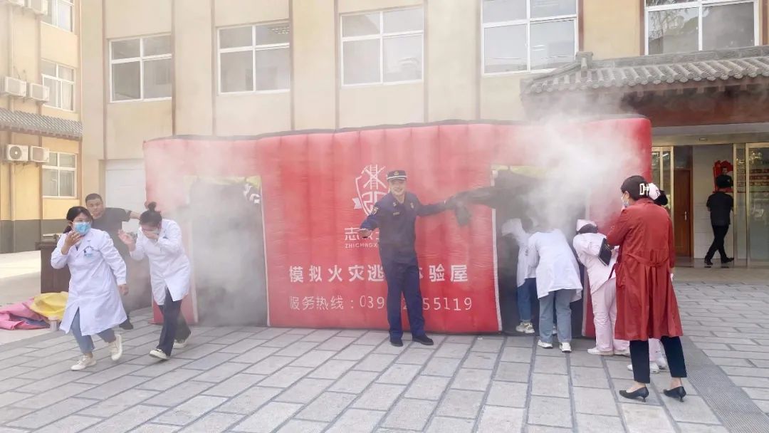 培训结束后,我院职工在消防员的指导下进行了“模拟火宅逃生”实战演练,切实提高了我院职工的自防自救实践能力。