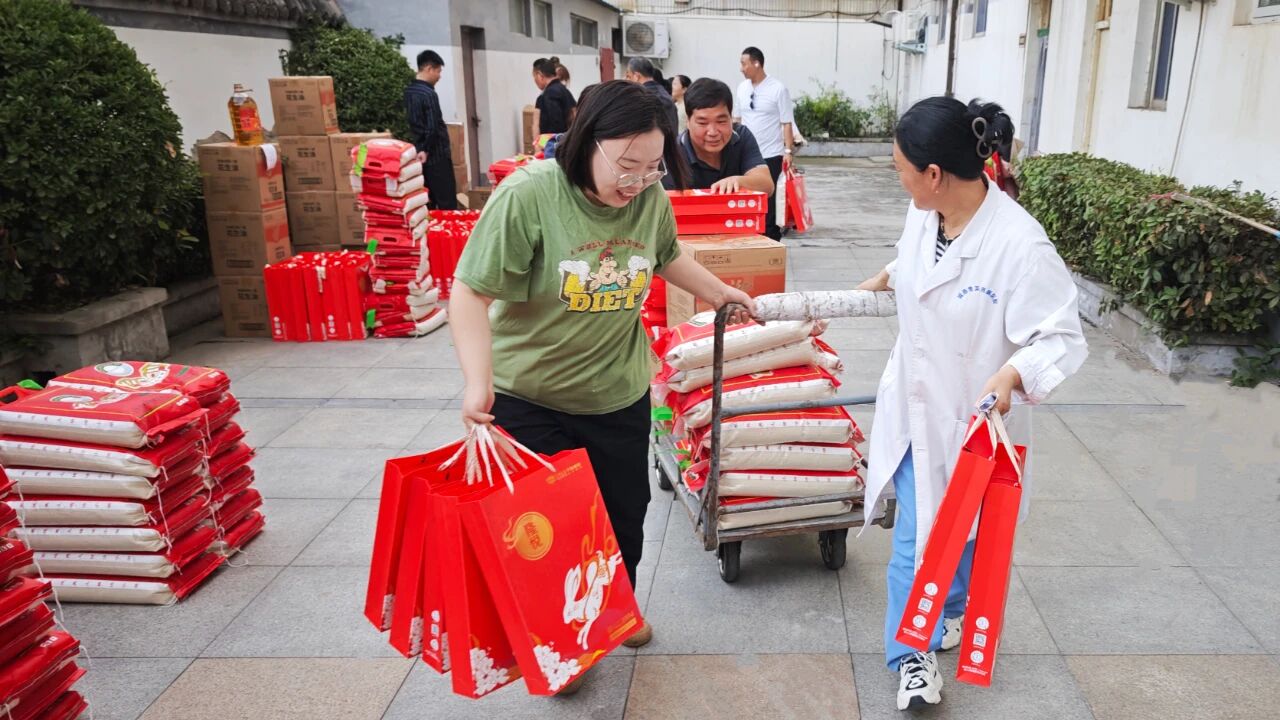 发放现场,工作人员逐一将礼盒送到各科室员工代表手中,并致以节日的问候。员工代表领取后有序分发至科室,忙碌的身影与亲切的问候交织其间,现场欢声笑语,其乐融融。