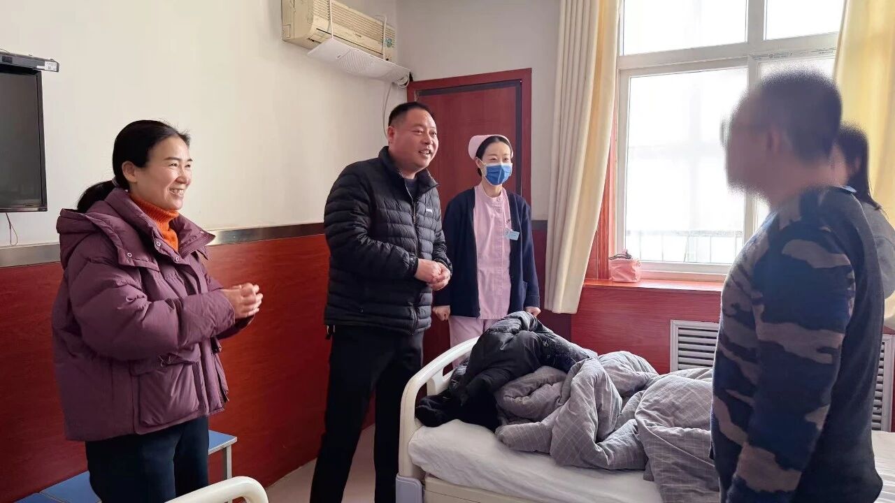 殷殷嘱托传关爱,句句关怀暖人心。“新年快乐,给您拜年了!祝您早日康复!”“身体恢复得怎么样?饮食还习惯吗?”一声声亲切的问候、一句句暖心的叮嘱,驱散了患者心中的乡愁与病痛的阴霾。医院领导与患者亲切交谈,详细询问他们的治疗进展、生活状况,为他们送去医院的关怀与温暖,鼓励患者树立战胜病魔的信心和勇气,积极配合治疗,争取早日康复。